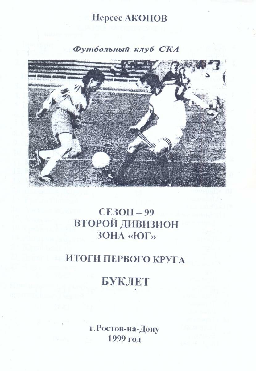 «Футбольный клуб СКА. Сезон-99. Второй дивизион. Зона «Юг». Итоги первого круга»