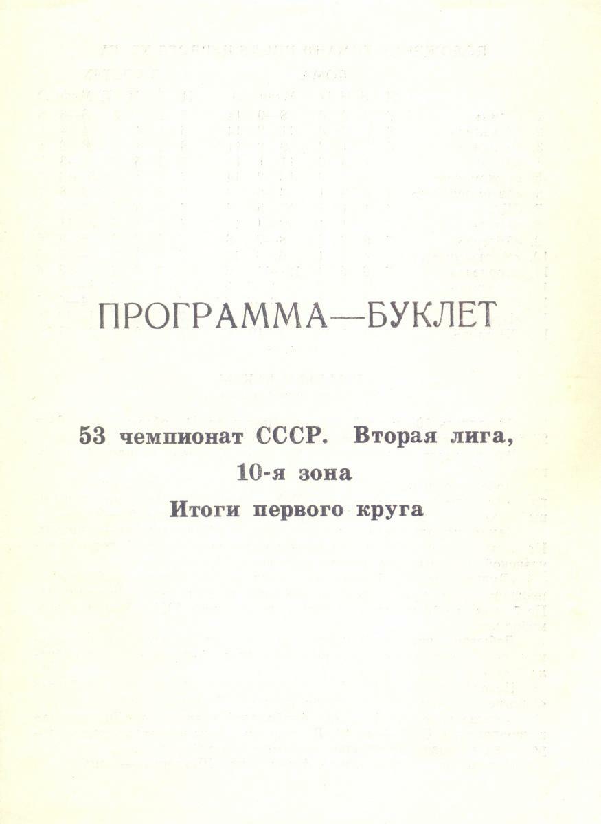 «Программа-буклет. 53 чемпионат СССР. Вторая лига, 10-я зона. Итоги первого круга»