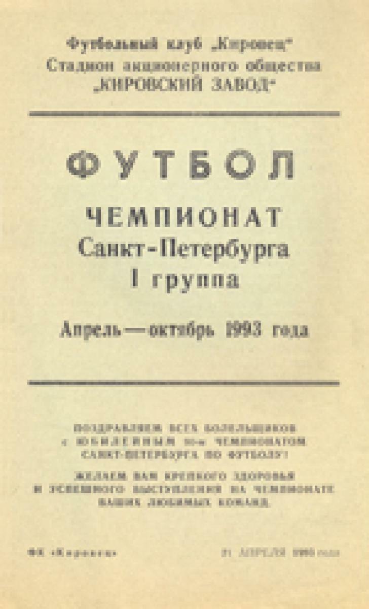 «Футбол. Чемпионат Санкт-Петербурга. I группа. Апрель – октябрь 1993 года»