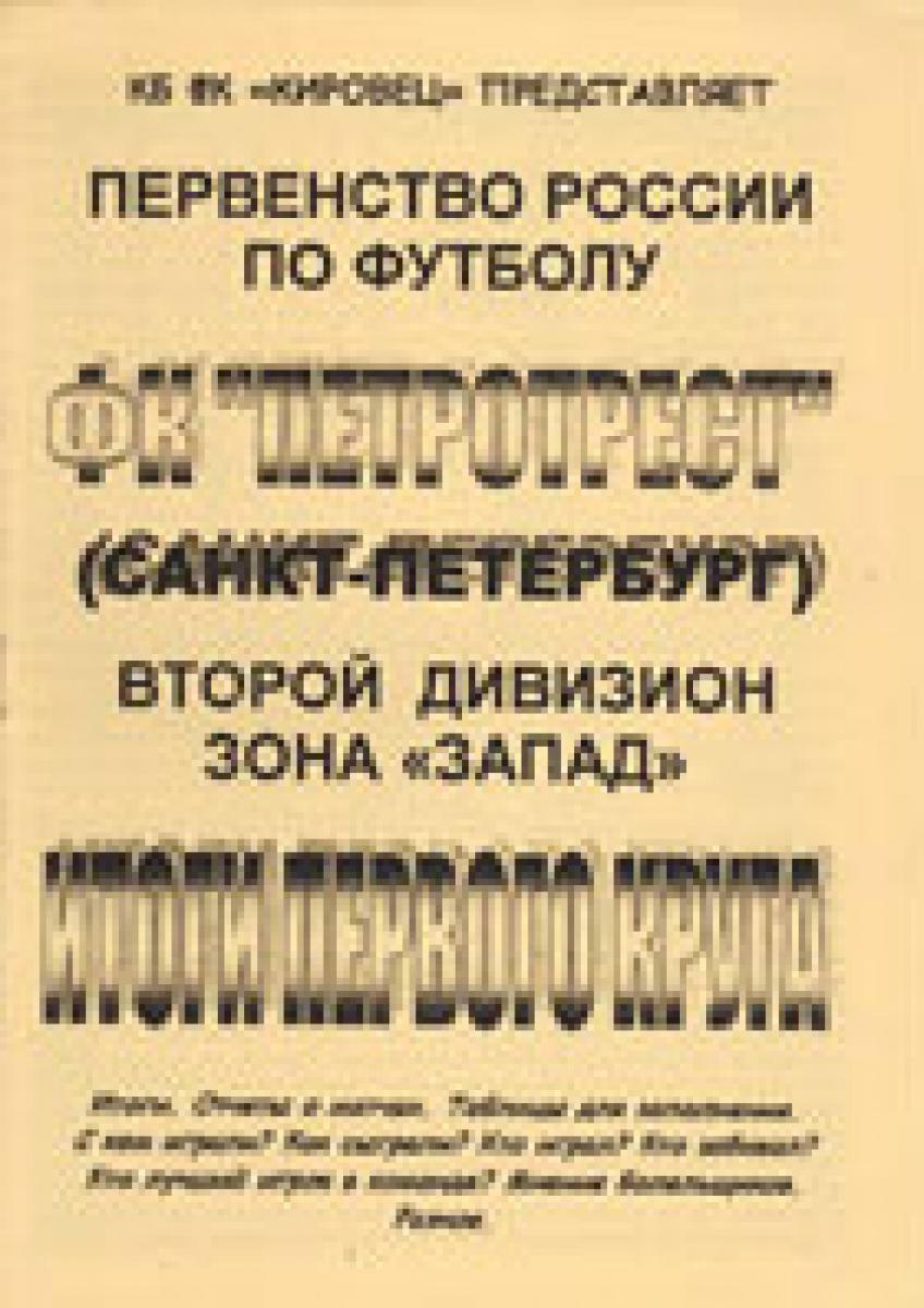 «Первенство России по футболу. ФК «Петротрест» (Санкт-Петербург). Второй дивизион. Зона «Запад». Итоги первого круга»