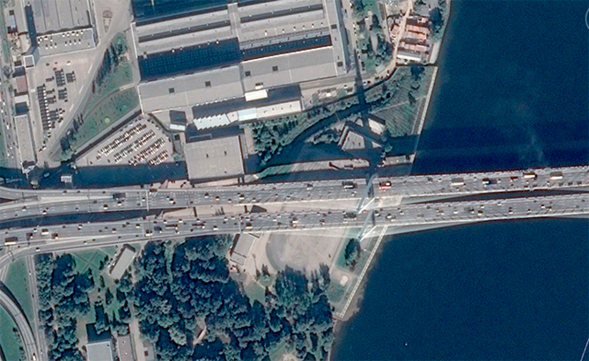 На месте стадиона расположены опоры Большого Обуховского (Вантового) моста