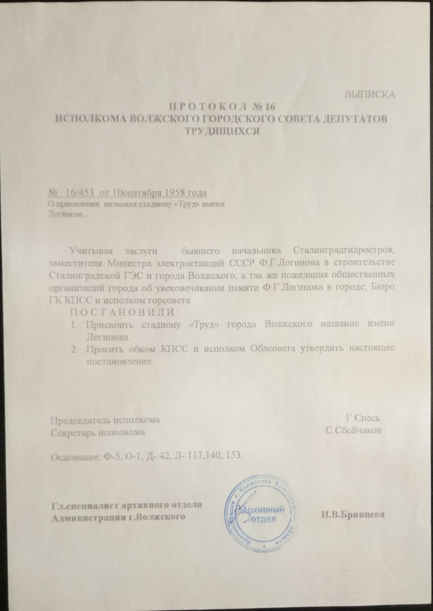 Центральный стадион им. Ф.Г. Логинова, Волжский СССР