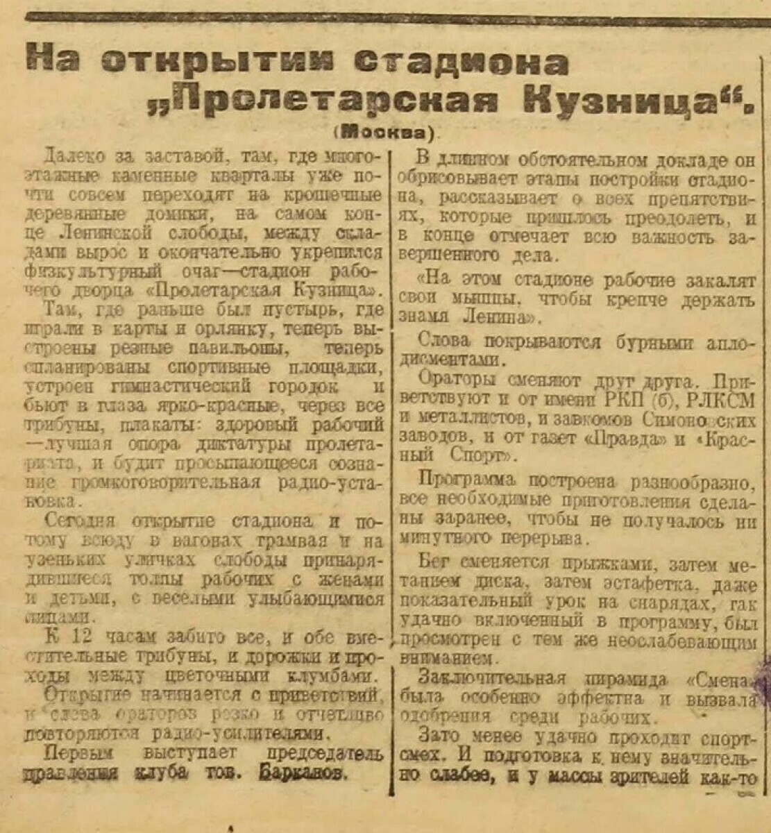 Стадион рабочего дворца «Пролетарская кузница», Москва СССР